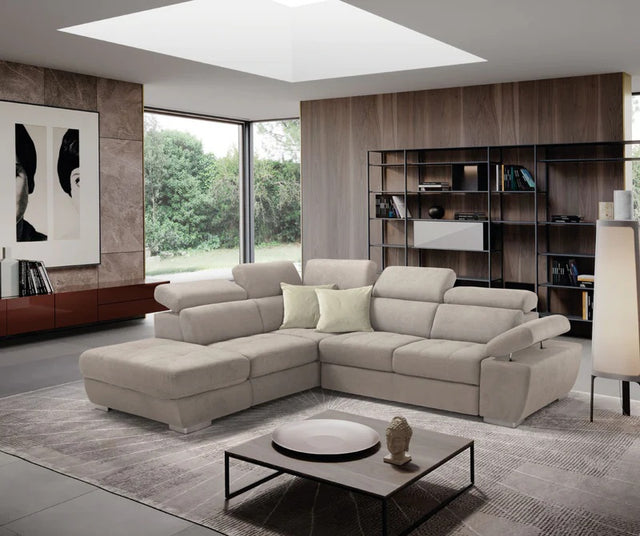 ISABEL è il divano dal design moderno e funzionale. È dotato di 5 poggiatesta regolabili manualmente studiati per il massimo confort della zona cervicale, braccioli regolabili manualmente con sistema a cricchetto e un carrello estraibile che lo trasforma in pochi secondi in un pratico letto. I due braccioli regolabili rendono la seduta ancor più avvolgente rendendolo uno dei modelli più richiesti di Am Casa.