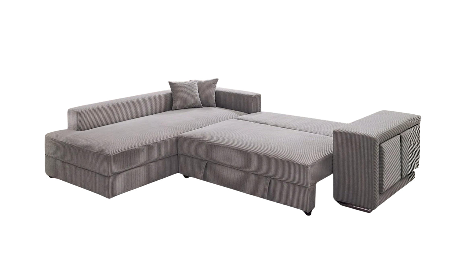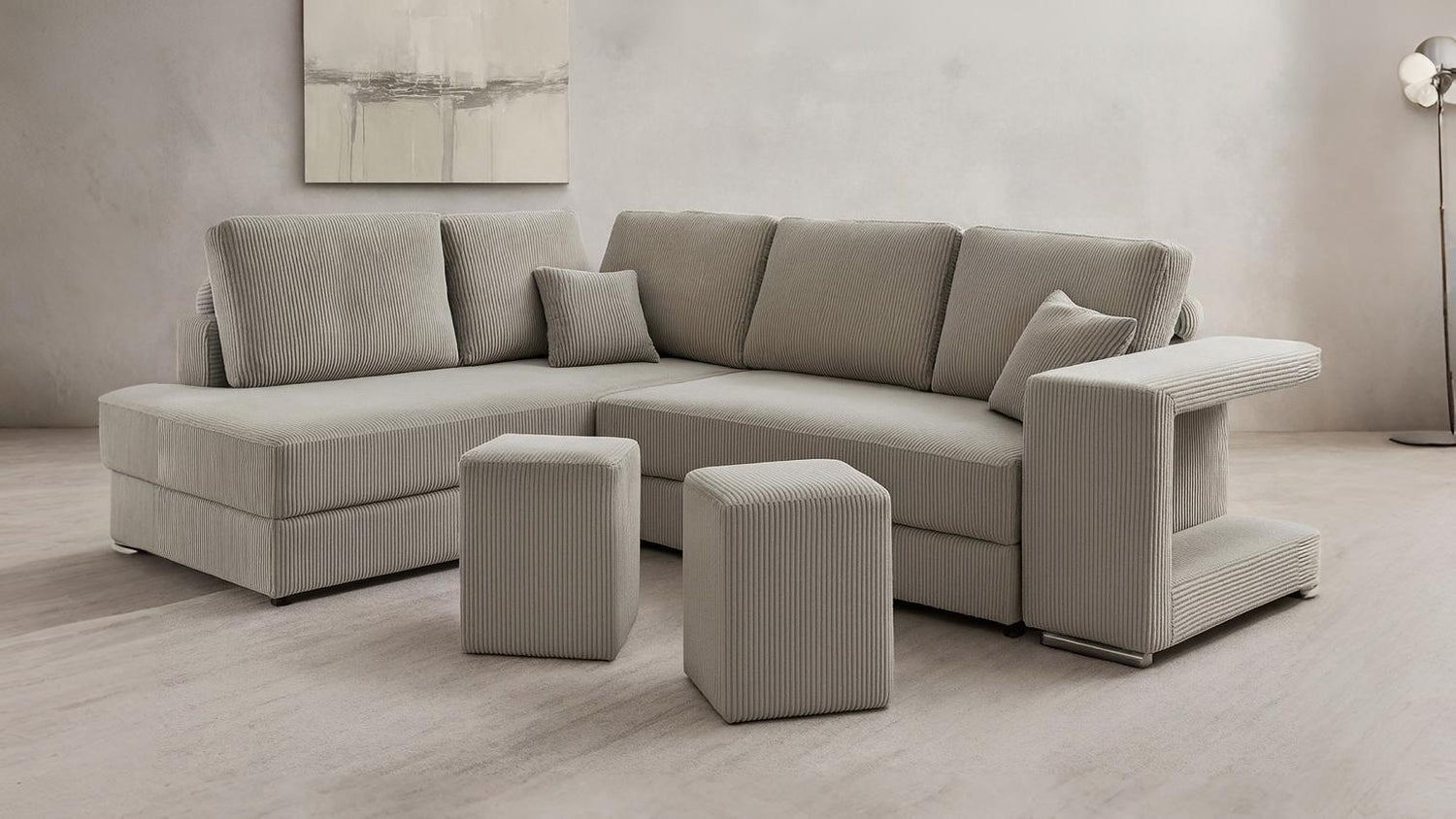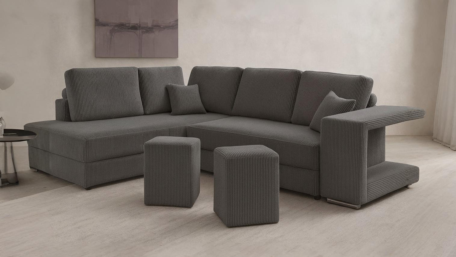 Il divano letto angolare Karina è la soluzione perfetta per chi ama un design moderno e minimalista. Grazie alla sua eccezionale funzionalità, offre un comfort superiore, adattandosi con eleganza a qualsiasi ambiente della casa.