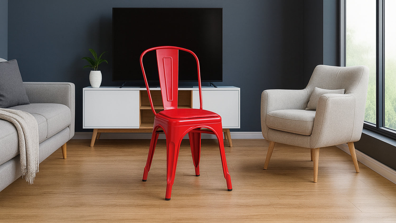Il design ed il materiale la rendono una sedia moderna e originale, utilizzabile anche in ambienti interni come cucina, soggiorno o studio, rendendo la stanza raffinata ed elegante. La struttura della Sedia Bristol Pu è verniciata in due tempi con vernice atossica resistente alla ruggine.