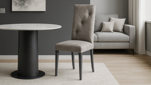 Rinnova il tuo spazio con la nostra sedia imbottita rivestita in tessuto microfibra. Acquista ora per un mix perfetto di stile e comfort nella tua casa.