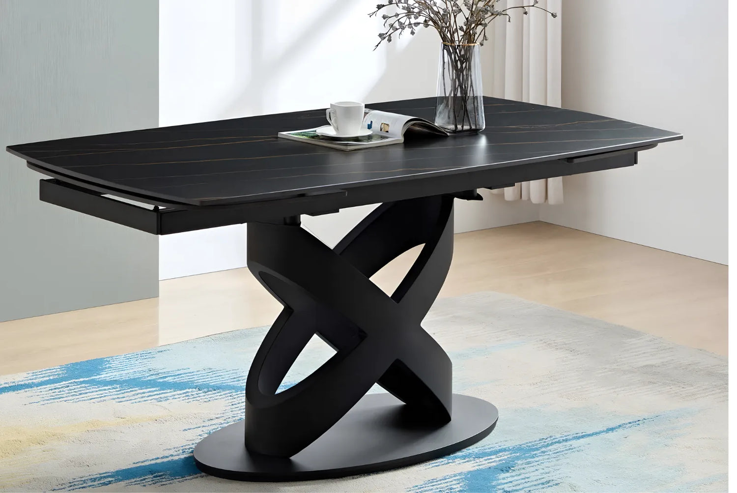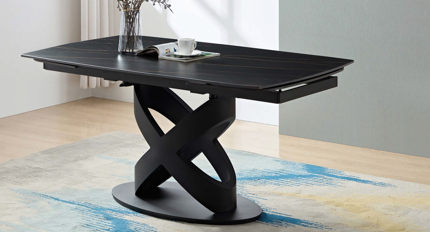 Questo modello da 160 cm dispone di 2 allunghe laterali da 40 cm le quali permettono di aggiungere posti in più a tavola per gli ospiti. Anche il meccanismo di allunga viene proposto nella stessa finitura del basamento, per creare un piacevole coordinamento cromatico.