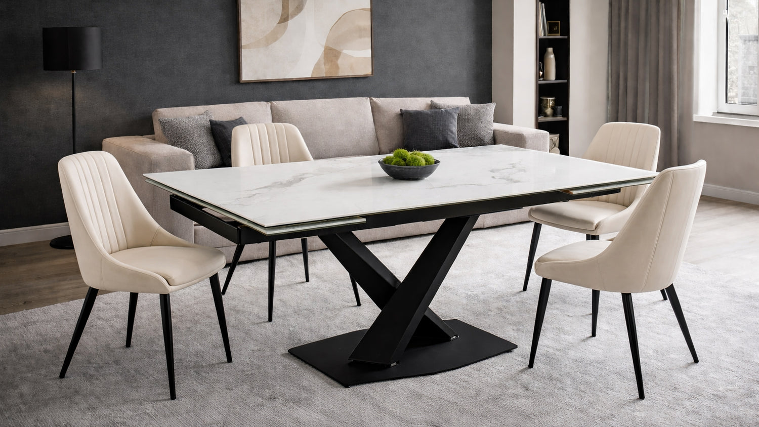 La superficie in marmo garantisce una durata eccezionale e facilità di pulizia, rendendo questo tavolo ideale per l’uso quotidiano. Con la sua combinazione di materiali di alta qualità e un’estetica accattivante, il tavolo allungabile Malcolm diventerà il punto focale perfetto per la tua sala da pranzo o il tuo soggiorno.