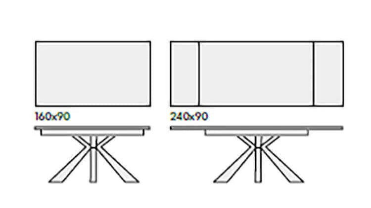 L. 160(240 cm aperto) P. 90 H. 75 cm