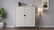 Funzionalità ottimizzata: Dotato due ante battenti e ripiani, il mobile alto Lotus offre un ampio spazio di contenimento, ideale per organizzare libri, oggetti decorativi e tutto ciò che si desidera tenere a portata di mano, ma nascosto alla vista.