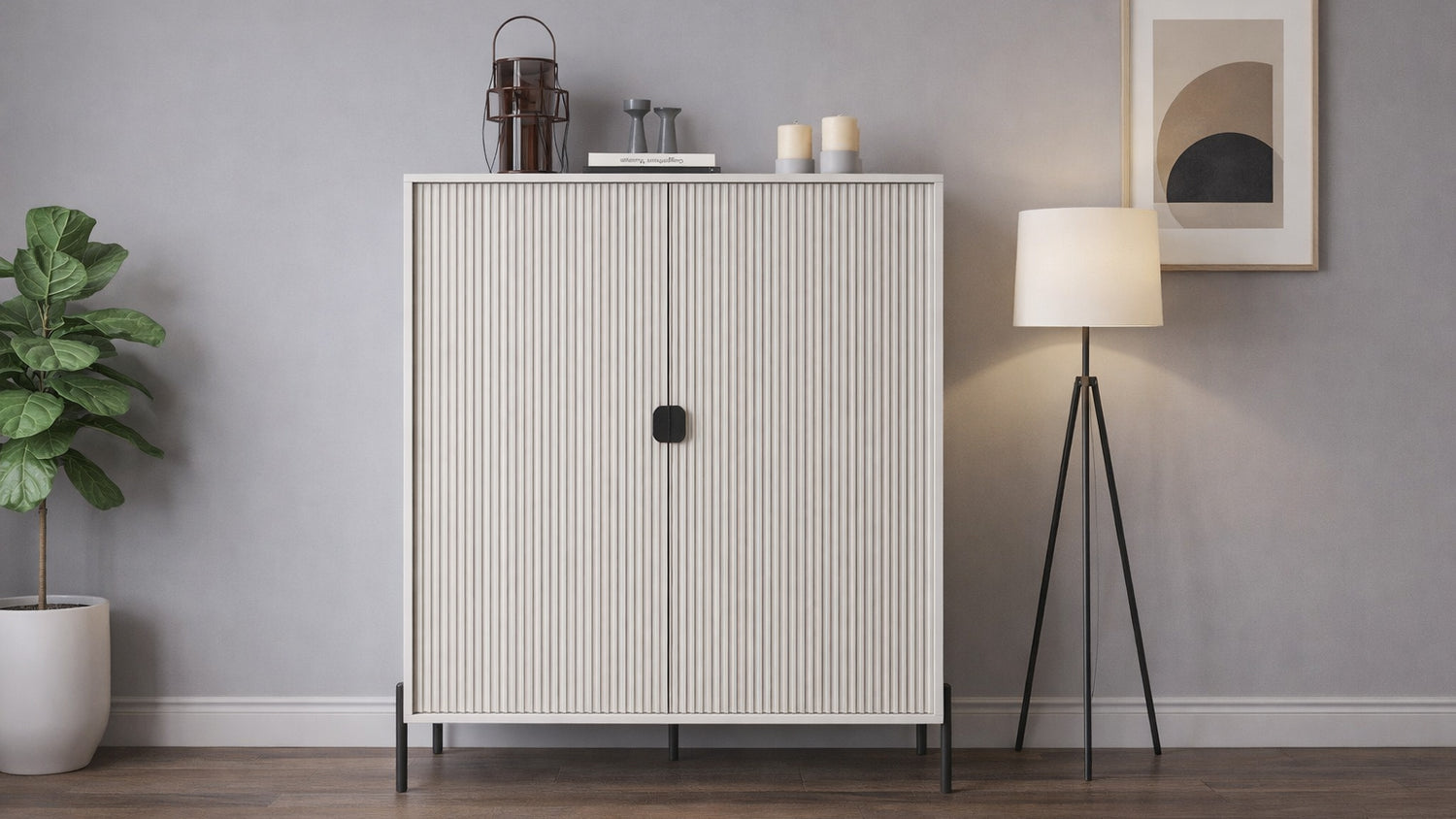 Dal design raffinato e moderno, il contenitore Lotus 2 ante è la soluzione ideale per chi desidera un arredo elegante e funzionale. La finitura color Cashmere, abbinata alle ante cannettate e ai dettagli in metallo nero, dona un tocco di sofisticata contemporaneità. Perfetto per qualsiasi ambiente, questo complemento d’arredo si distingue per le sue linee pulite e la sua versatilità, completando con stile il tuo spazio.