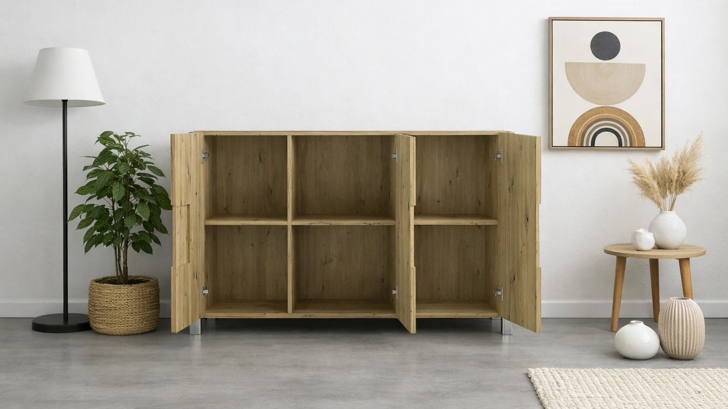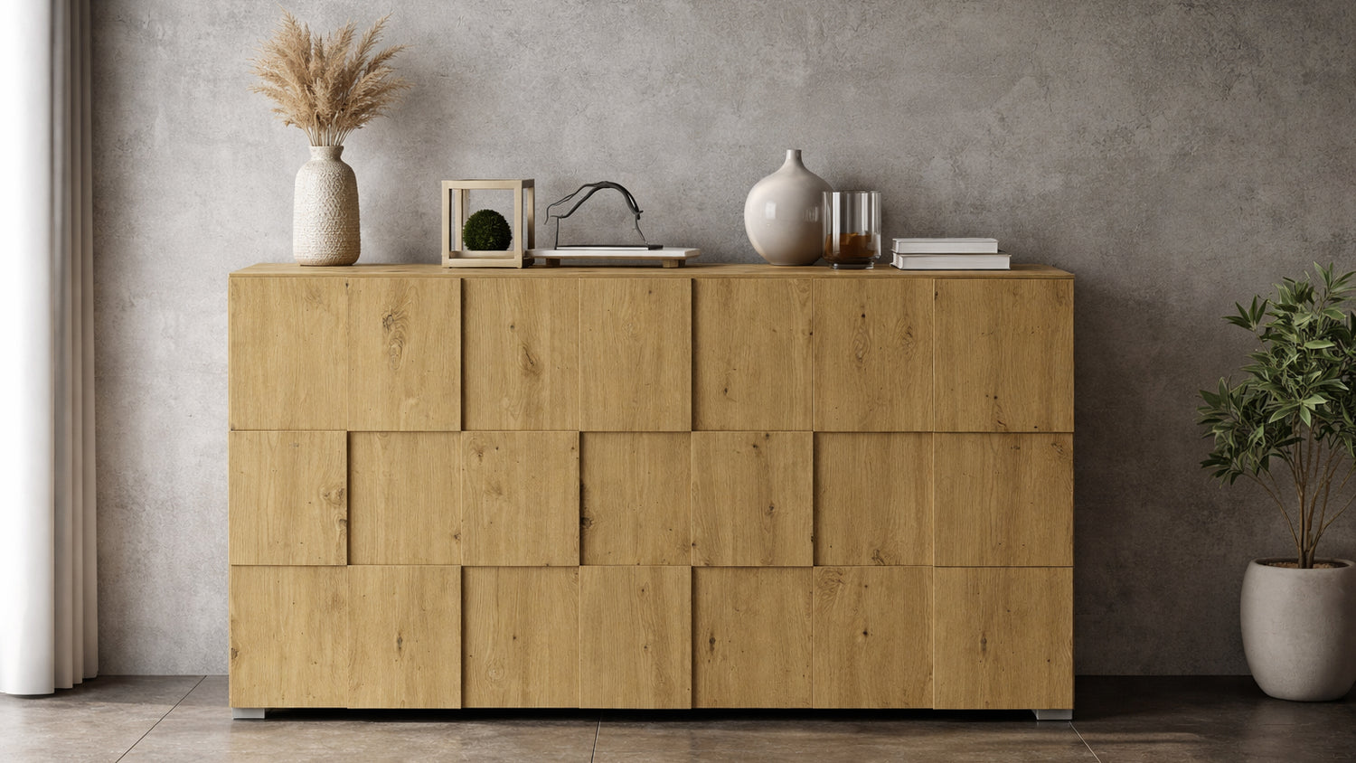 Mobile contenitore dal Design Moderno e Lineare, particolarmente indicato per arredare gli ambienti dallo Stile Industrial e Urban. La madia Patrik è caratterizzata da una solida struttura con 2 comode ante, perfetta per collocare documenti importanti o piccoli utensili. La madia contenitore Patrik è disponibile in una finitura di Tendenza Rovere, ottimale per dare un tocco di Glamour alla sala da pranzo, al soggiorno o all’ufficio.